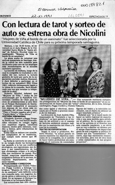 Con lectura de tarot y sorteo de auto se estrena obra de Nicolini [artículo].