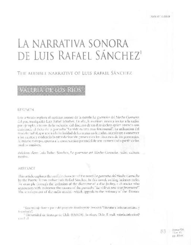 La narrativa sonora de Luis Rafael Sánchez [artículo] Valeria de los Ríos.