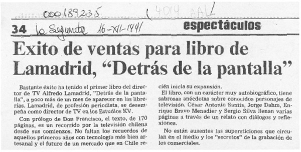 ![Exito de ventas para libro de Lamadrid, "Detrás de la pantalla" [artículo]. Exito de ventas para libro de Lamadrid, "Detrás de la pantalla" [artículo].](channels-528_mime_jpg.gif)