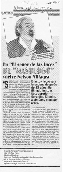 En "El señor de las luces" de "masólogo" vuelve Nelsón Villagra [artículo].