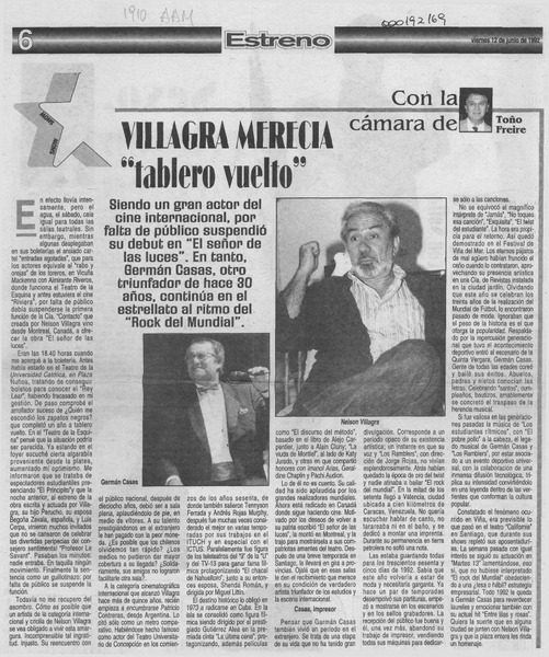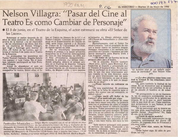 Nelson Villagra, "Pasar del cine al teatro es como cambiar de personajes" [artículo].