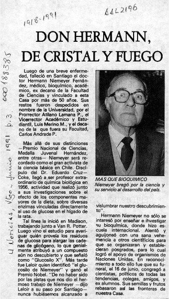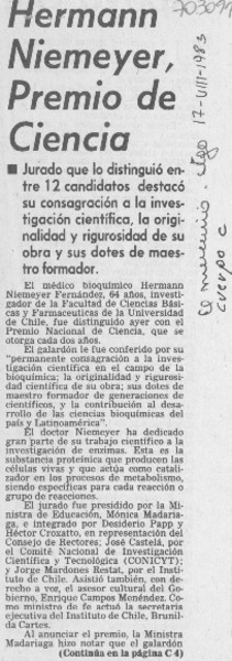 Hermann Niemeyer, premio de ciencia. [artículo]