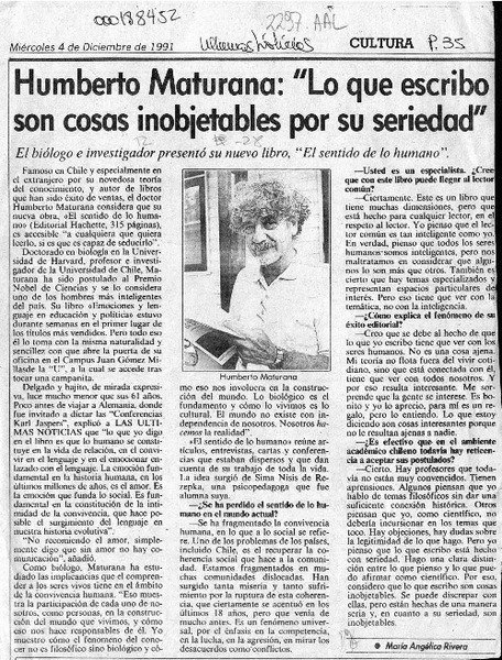 Humberto Maturana, "Lo que escribo son cosas inobjetables por su seriedad" [artículo] María Angélica Rivera.