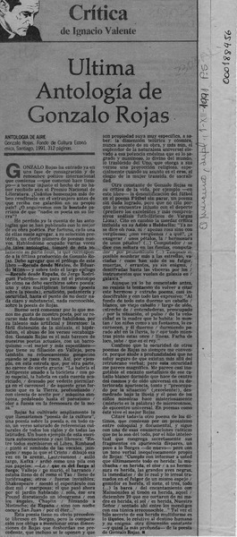 Nueva antología poética de Gonzalo Rojas [artículo] Wellington Rojas Valdebenito.