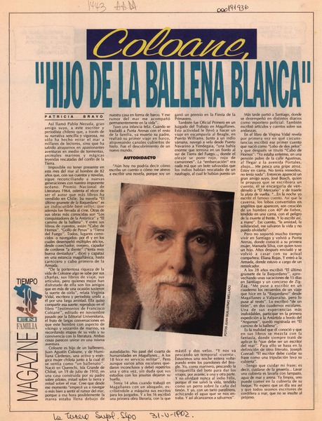 Francisco Coloane cuenta algo de su vida [artículo] Wellington Rojas Valdebenito.
