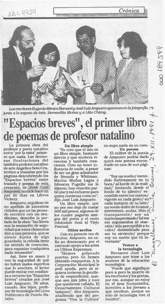"Espacios breves", el primer libro de poemas de profesor natalino [artículo].