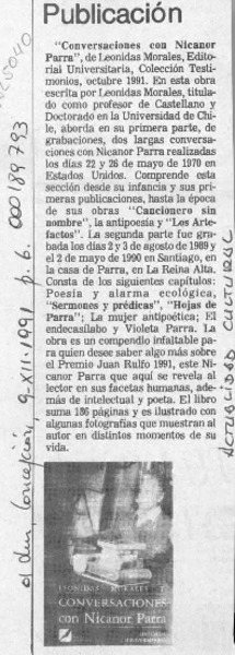 Parra, Nicanor - MORALES T., LEONIDAS - CONVERSACIONES CON NICANOR PARRA