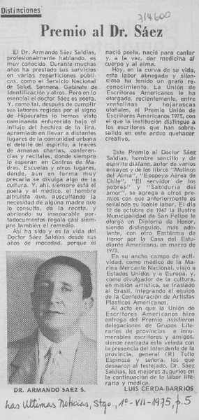Premio al Dr. Sáez [artículo] Luis Cerda Barrios.