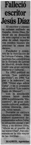Los años duros", conversaciones con Jesús Díaz (II) [artículo] Hernán Loyola.