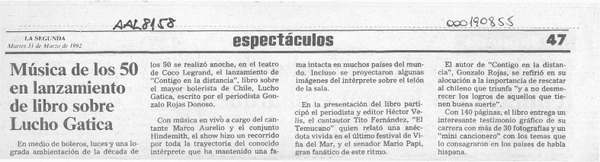 Música de los 50 en lanzamiento de libro sobre Lucho Gatica [artículo].