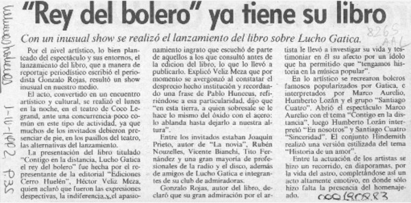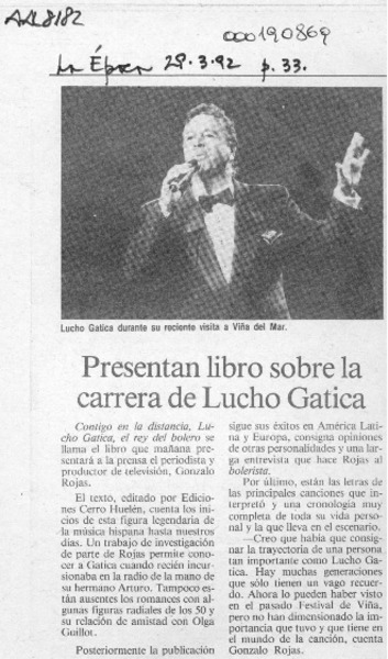 Presentan libro sobre la carrera de Lucho Gatica [artículo].