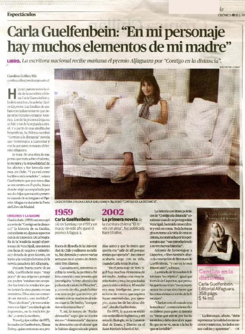 Autoras chilenas - Entrevistas - Guelfenbein, Carla - Contigo en la distancia