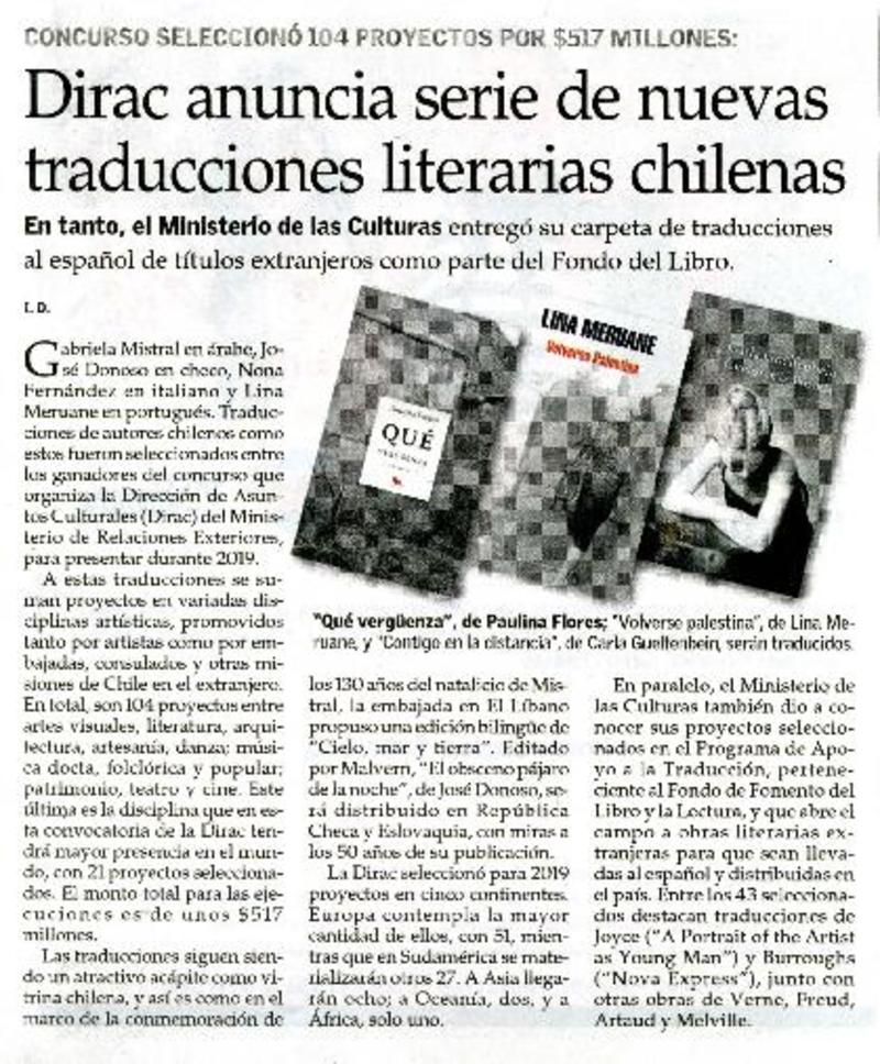 Dirac anuncia serie de nuevas traducciones literarias chilenas [artículo] I.D.