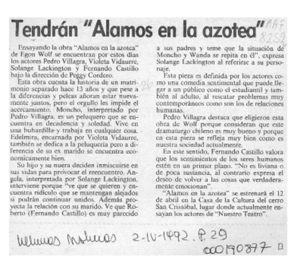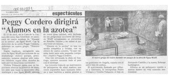 Peggy Cordero dirigirá "Alamos en la azotea" [artículo].