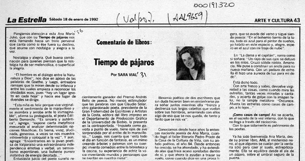 Tiempo de pájaros [artículo] Sara Vial.