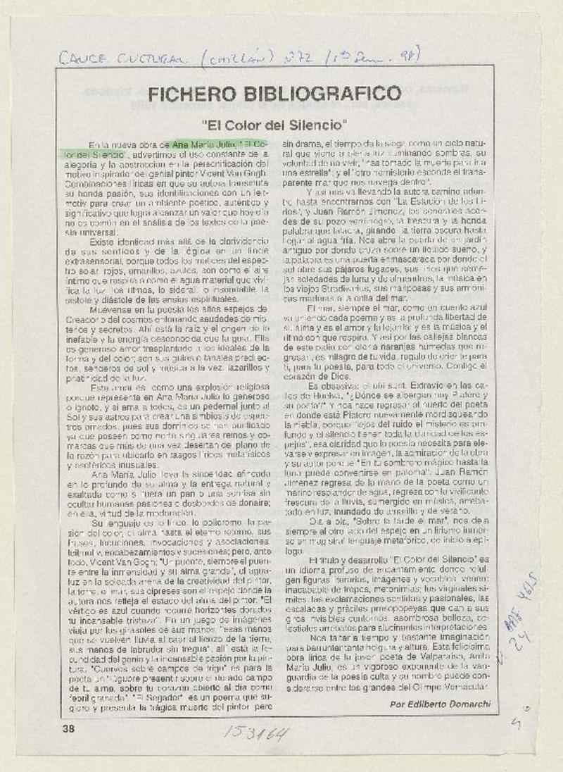 "El color del silencio" [artículo] Edilberto Domarchi.