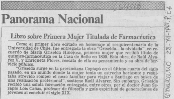 Libro sobre primera mujer titulada de farmacéutica. [artículo]