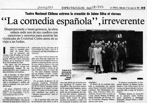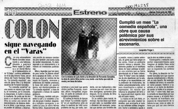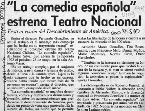 "La Comedia española" estrena Teatro Nacional [artículo].