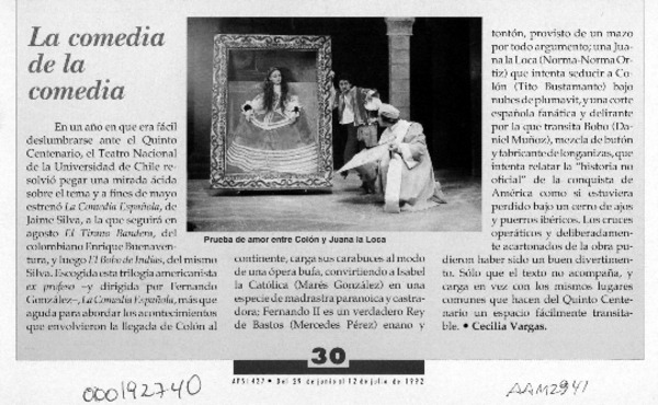 La comedia de la comedia [artículo] Cecilia Vargas.