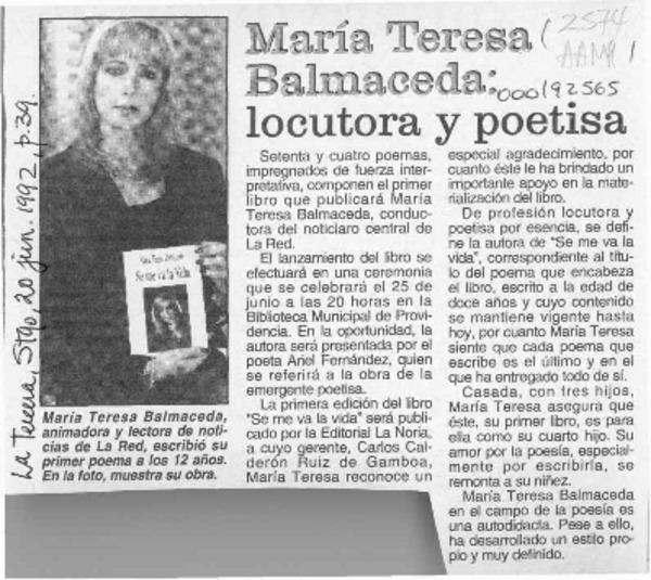 María Teresa Balmaceda, locutora y poetisa [artículo]