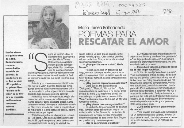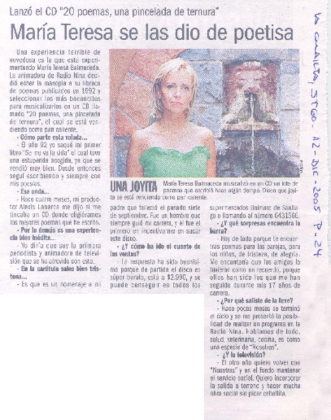 María Teresa se las dio de poetisa (entrevista) [artículo]