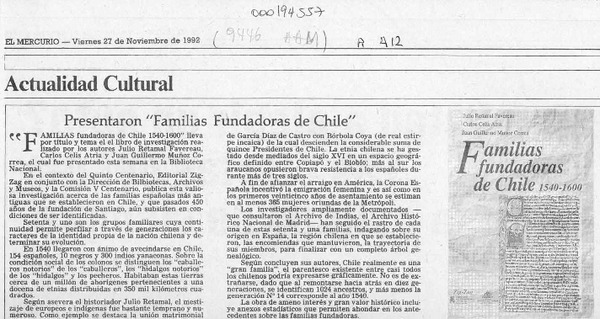 Presentaron "Familias fundadoras de Chile" [artículo].