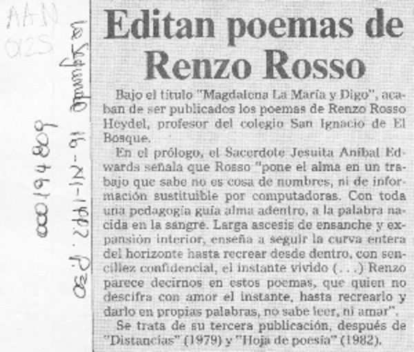 ROSSO, RENZO - MAGDALENA, LA MARIA Y DIGO