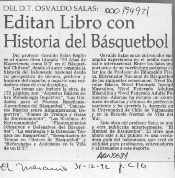 Salas, Osvaldo - 50 años de experiencia como D.T. en el básquetbol chileno