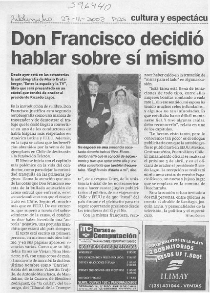 Don Francisco decició hablar sobre sí mismo [artículo] Ximena Orchard
