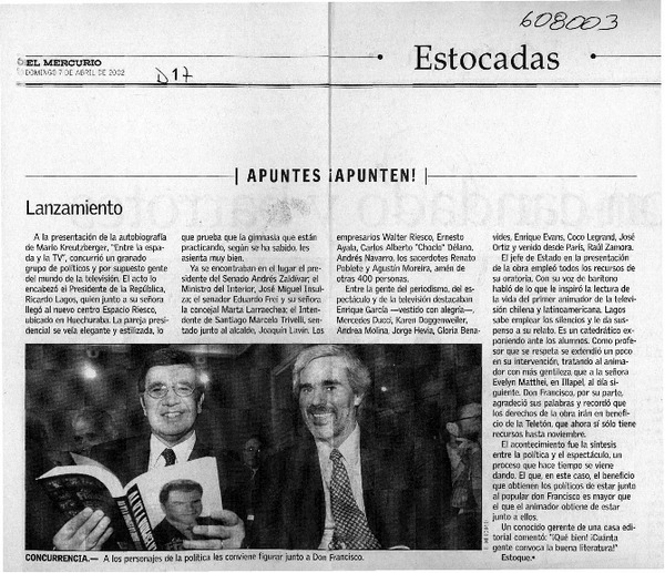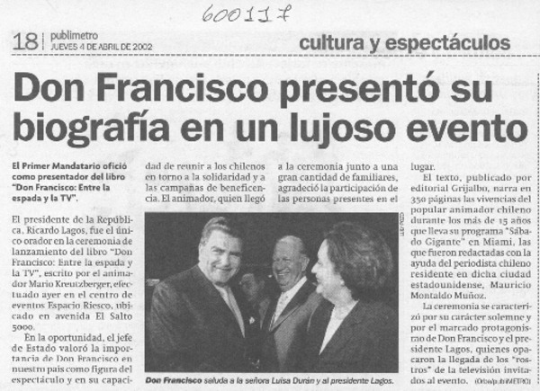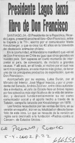 Presidente Lagos lanzó libro de Don Francisco [artículo]
