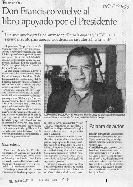 Don Francisco vuelve al libro apoyado por el Presidente [artículo]