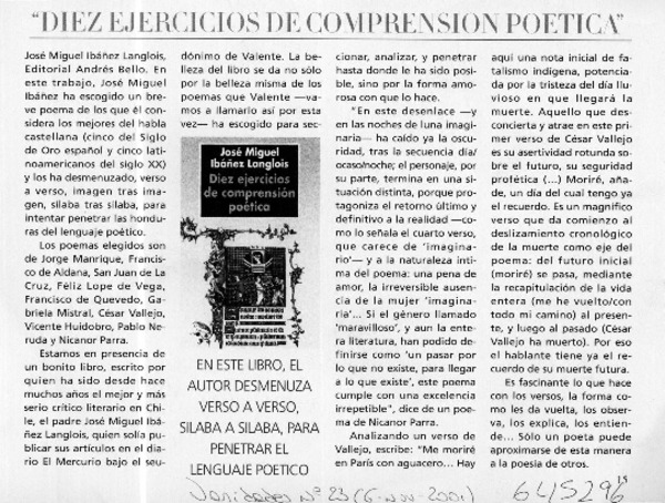 Ibáñez Langlois, José Miguel - Autores chilenos - Diez ejercicios de comprensión poética