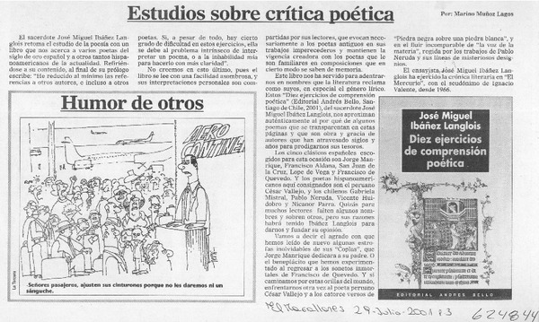 Estudios sobre crítica poética [artículo] Marino Muñoz Lagos