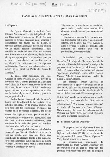 Cavilaciones en torno a Omar Cáceres [artículo] Ignacio Herrera González