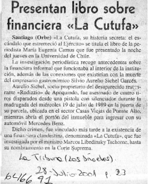 Presentan libro sobre financiera "La Cutufa" [artículo]