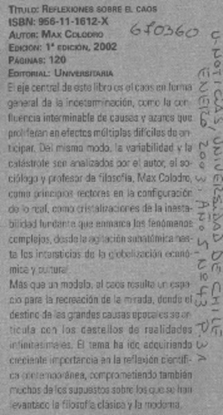 Autores chilenos - Colodro, Max - Reflexiones sobre el caos