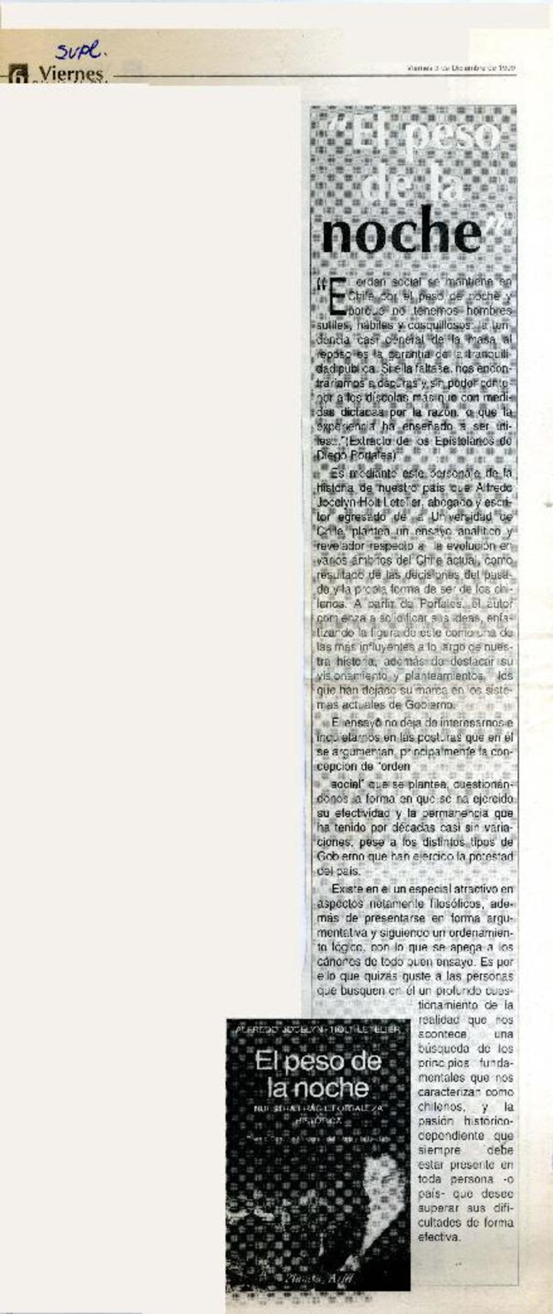 Autores chilenos - Jocelyn-Holt, Alfredo - Peso de la noche