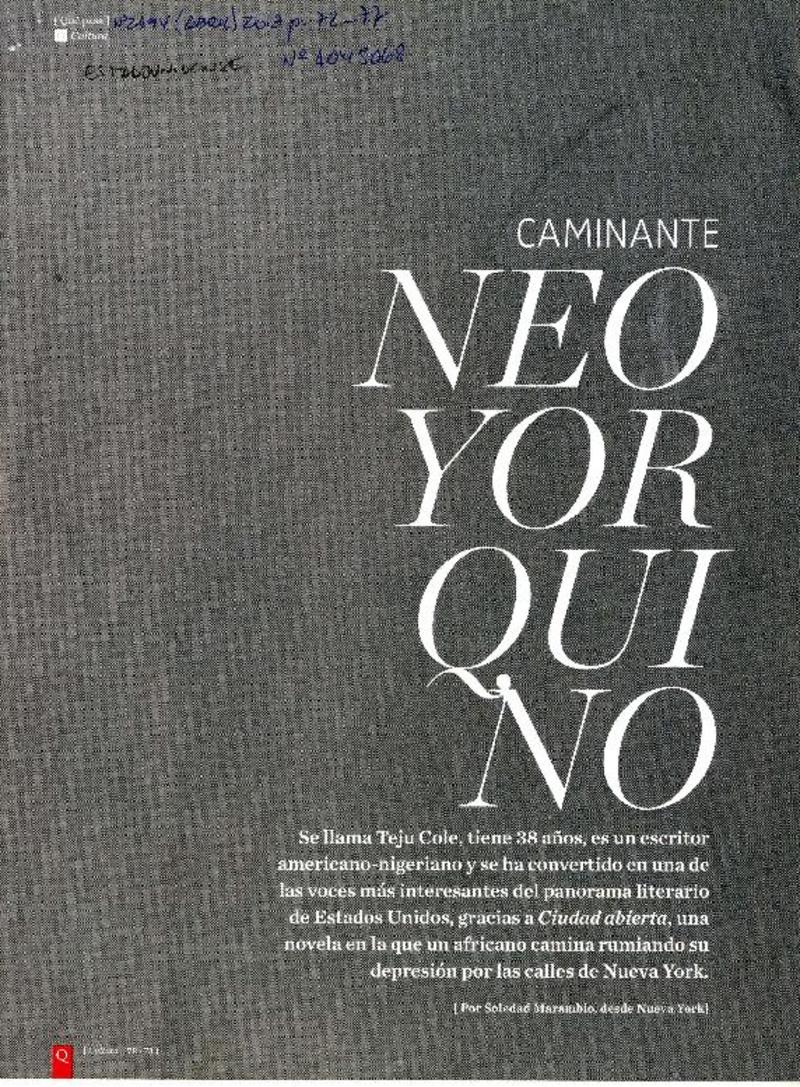 Caminante neoyorquino [artículo] Soledad Marambio.