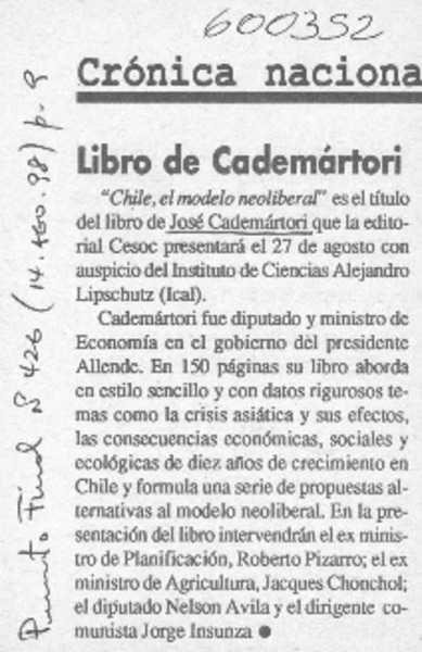 Autores chilenos - Cademártori, José - Chile, el modelo neoliberal