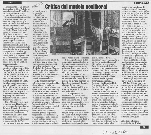 Crítica del modelo neoliberal [artículo] Roberto Avila.