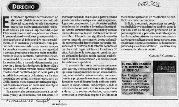El rol del estado y el mercado en la justicia [artículo] Carlos F. Cáceres D.
