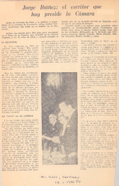 Jorge Ibáñez: el escritor que hoy preside la Cámara. [artículo]