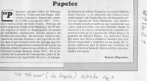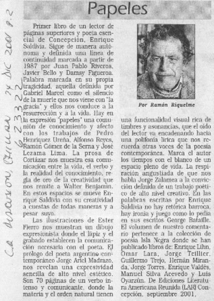 Autores chilenos - Saldivia Péndola, Enrique - Papeles
