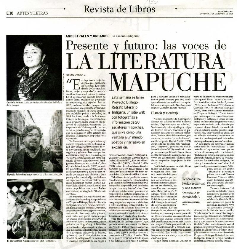 Presente y futuro las voces de la Literatura mapuche [artículo] : Roberto Careaga C.