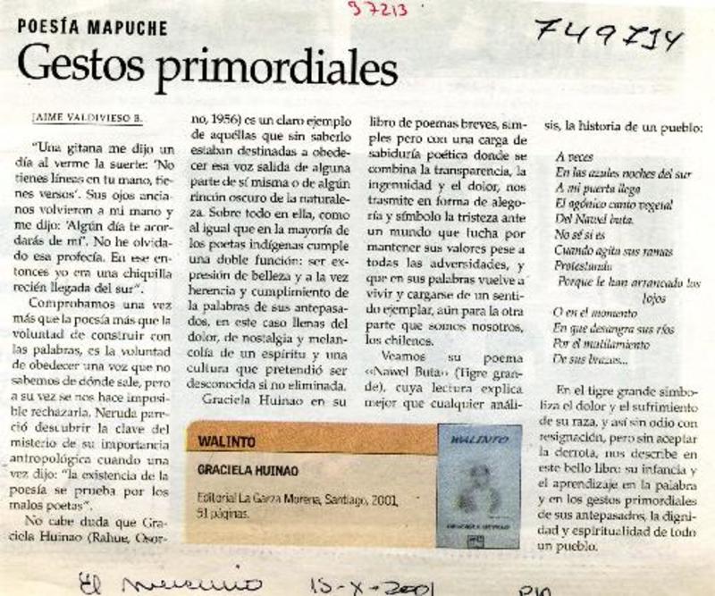 Autores chilenos - Huinao, Graciela - Walinto
