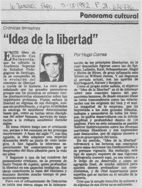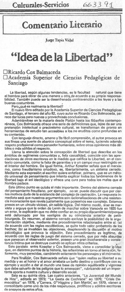 Cox Balmaceda, Ricardo - Autores chilenos - Idea de la libertad