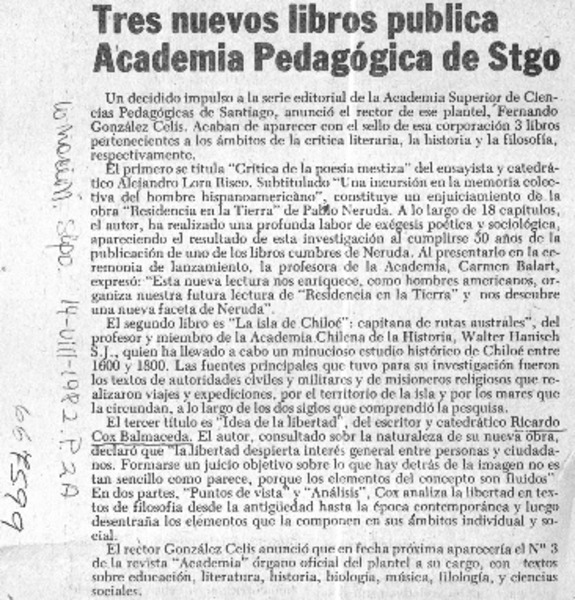 Tres nuevos libros publica Academia Pedagógica de Stgo. [artículo]