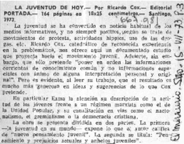 Autores chilenos - Cox Balmaceda, Ricardo - Juventud del mundo de hoy