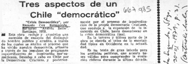 Cox Balmaceda, Ricardo - Autores chilenos - Crisis democrática