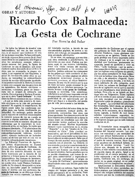 Ricardo Cox Balmaceda: la gesta de Cochrane [artículo] Hernán del Solar.